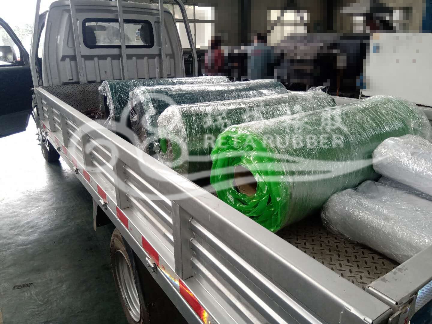滾筒包膠實例您現在的位置:網站首頁 >> 滾筒包膠實例 >> 濟寧15mm厚菱形包膠膠板發貨
