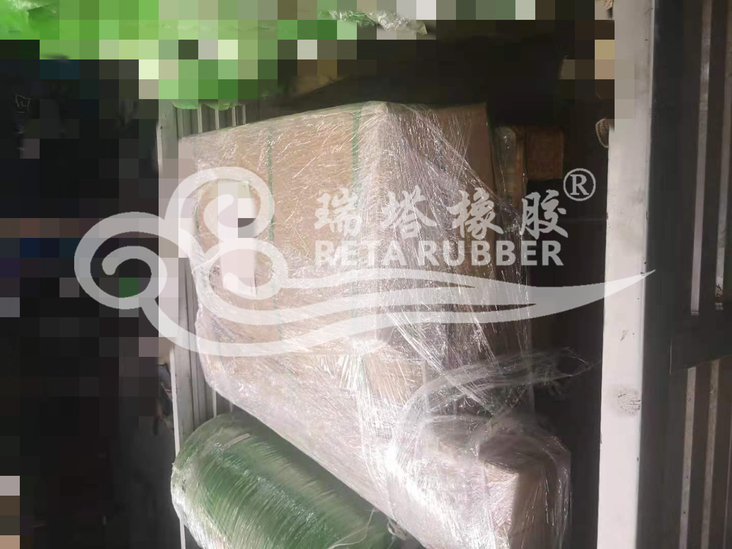 新疆客戶訂購滾筒包膠阻燃菱形膠板發貨