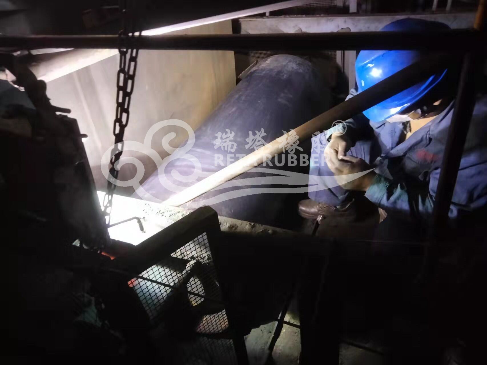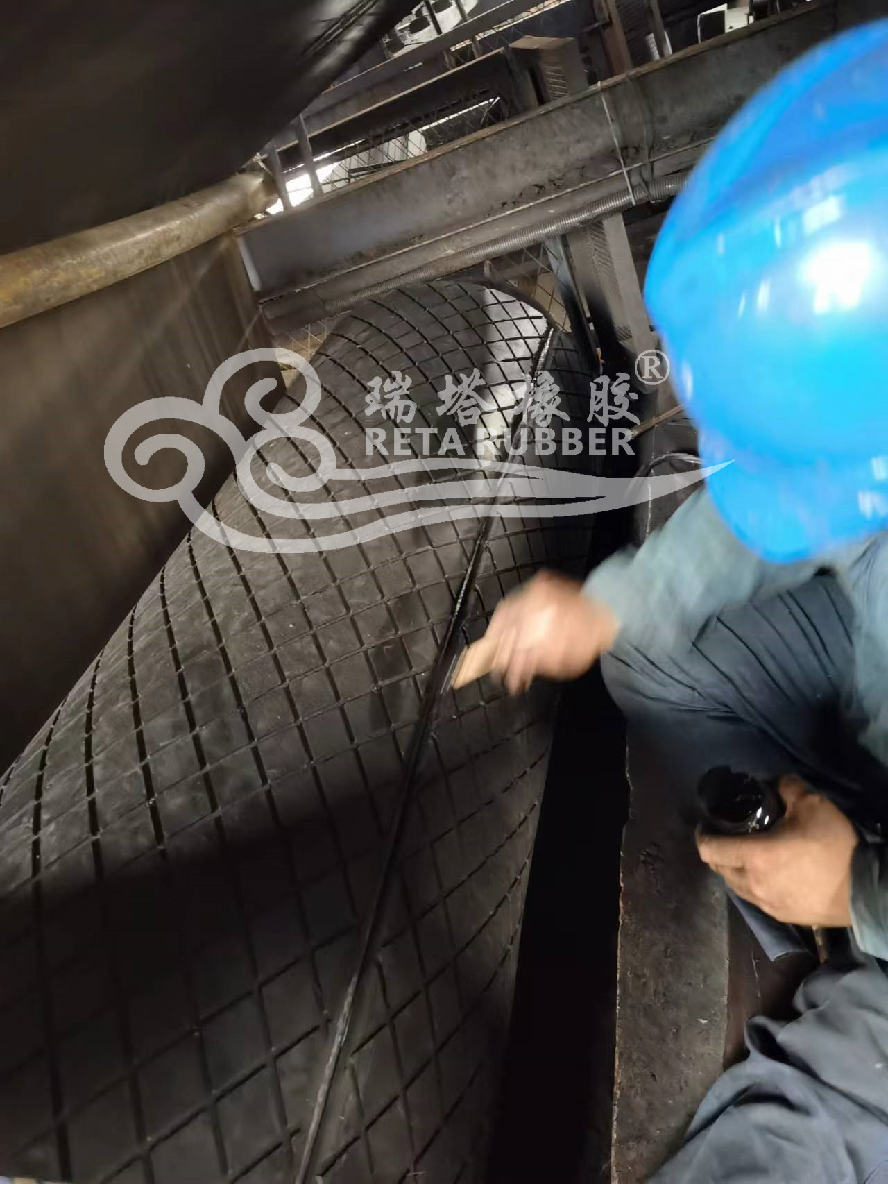 某煤電廠滾筒包膠現(xiàn)場施工