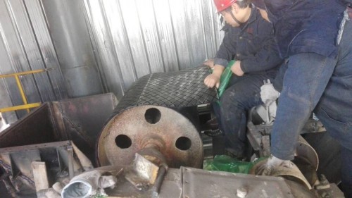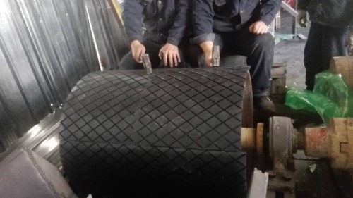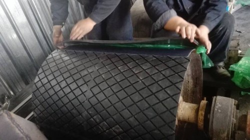 新安水泥廠滾筒包膠現場施工