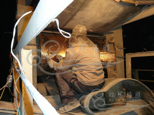 洛陽瑞塔橡膠為客戶提供專業化系統化的滾筒包膠服務,瑞塔橡膠是科研型橡膠企業,瑞塔樂于解決問題,這不僅僅是一個口號,瑞塔擁有專業的滾筒包膠現場施工隊伍,24小時待命,隨時為客戶提供高效優質的服務,以下是10月7日平頂山客戶現場滾筒包膠施工現場。
