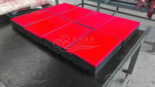 緩沖塊主要是針對客戶使用的復合式緩沖床設計生產的,以下是我公司按照客戶要求為其生產的緩沖塊,規格(長*寬*高)420*280*90mm,耐磨層厚度為25mm.