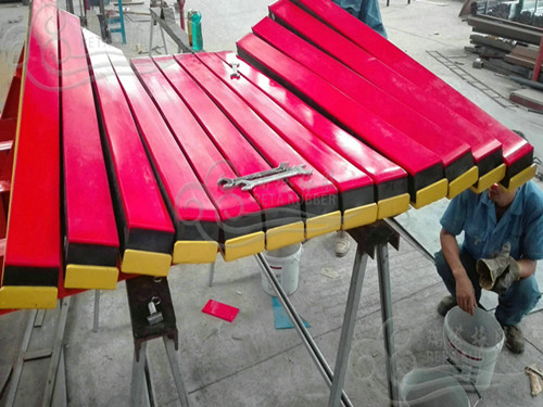 以下圖片是瑞塔橡膠根據山東用戶提供的工礦條件及安裝要求設計生產的變角度緩沖床,其角度從7°漸變為30°,有效的滿足了客戶使用需求,瑞塔是專業的緩沖床生產企業,瑞塔樂于為您解決問題。