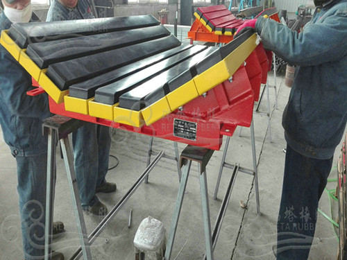 緩沖床客戶訂單紛紛發(fā)貨以下圖片是瑞塔橡膠根據(jù)山西5家客戶實際工礦條件和安裝使用需求設(shè)計生產(chǎn)的帶寬1200mm,長度1200mm阻燃超重型緩沖床、重型緩沖床以及帶寬1000mm和帶寬1200mm高彈性重型緩沖床(井上用)。
